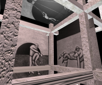The artist's creative efforts comprise attempts to reveal the context of man/woman in a modern system ridden environment